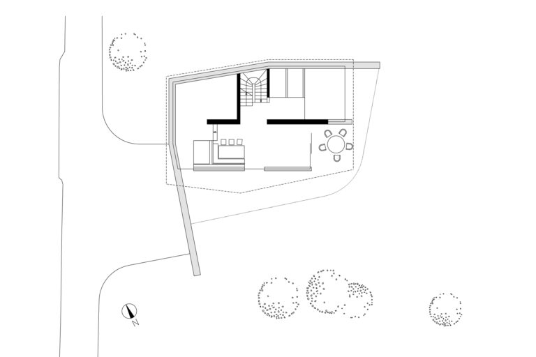 Auf einer Kuppe oberhalb von Feldkirch gelegen, zwischen Walgau und Rheintal, verbindet sich die Weite der Landschaft mit der Intimität des privaten Wohnens. Das massive, steinerne Untergeschoss des Hauses ruht im Gelände. Kräftige, innen liegende Wände tragen den Holzbau des Obergeschosses, heben ihn vom erdberührenden Wohngeschoss ab und geben den Blick nach außen frei.